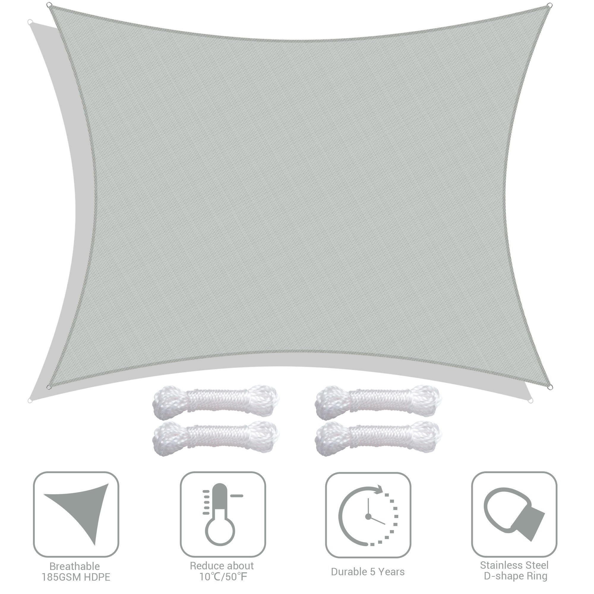 - HDPE Reduces Heat Transfer - Made of 100% brand new 185GSM HDPE material to efficiently reduce the temperature under sail about 50°F (10°C); excellent breathability to allow breeze to pass through; offers a cool and airy shelter on hot days