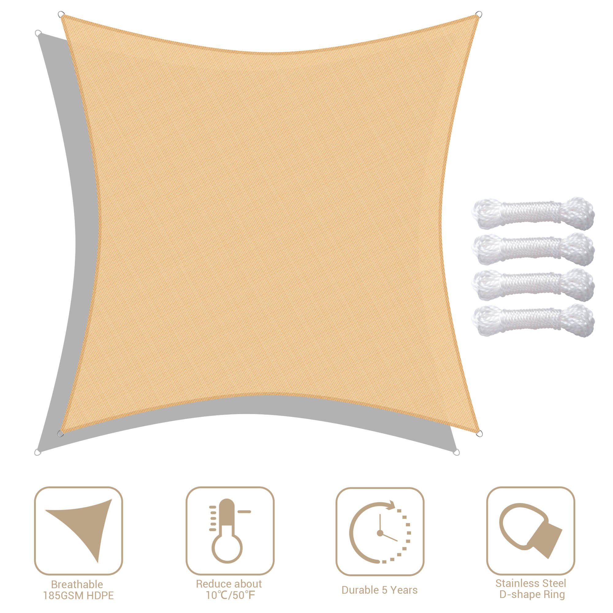 - HDPE Reduces Heat Transfer - Made of 100% brand new 185GSM HDPE material to efficiently reduce the temperature under sail about 50°F (10°C); excellent breathability to allow breeze to pass through; offers a cool and airy shelter on hot days