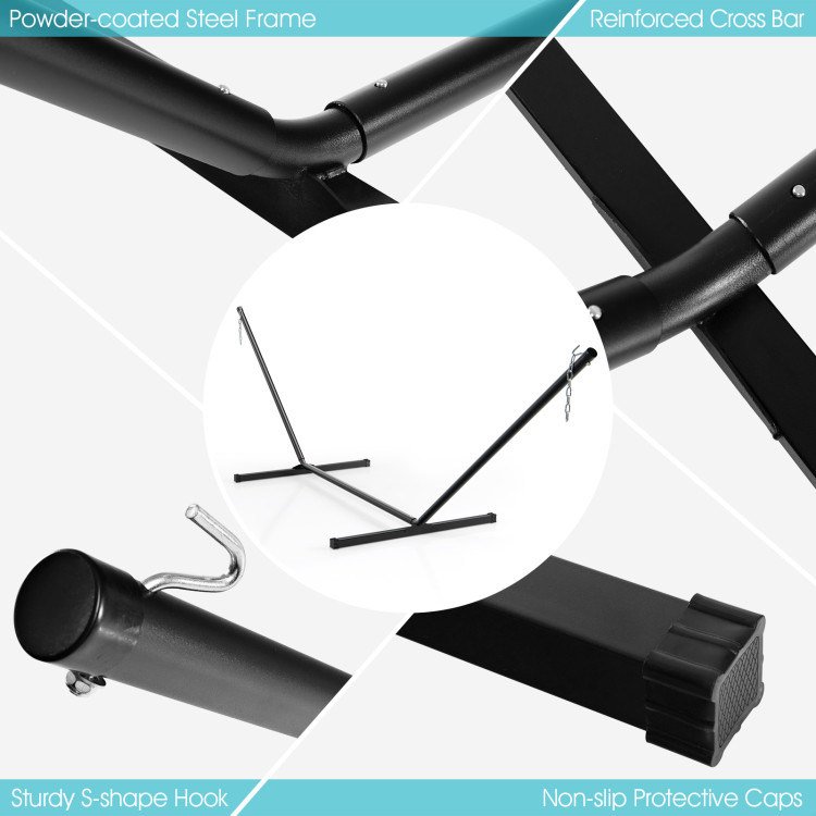 The whole frame of this hammock stand is made of sprayed steel tubes which ensure excellent load capacity of 450 lbs and rustproof performance.