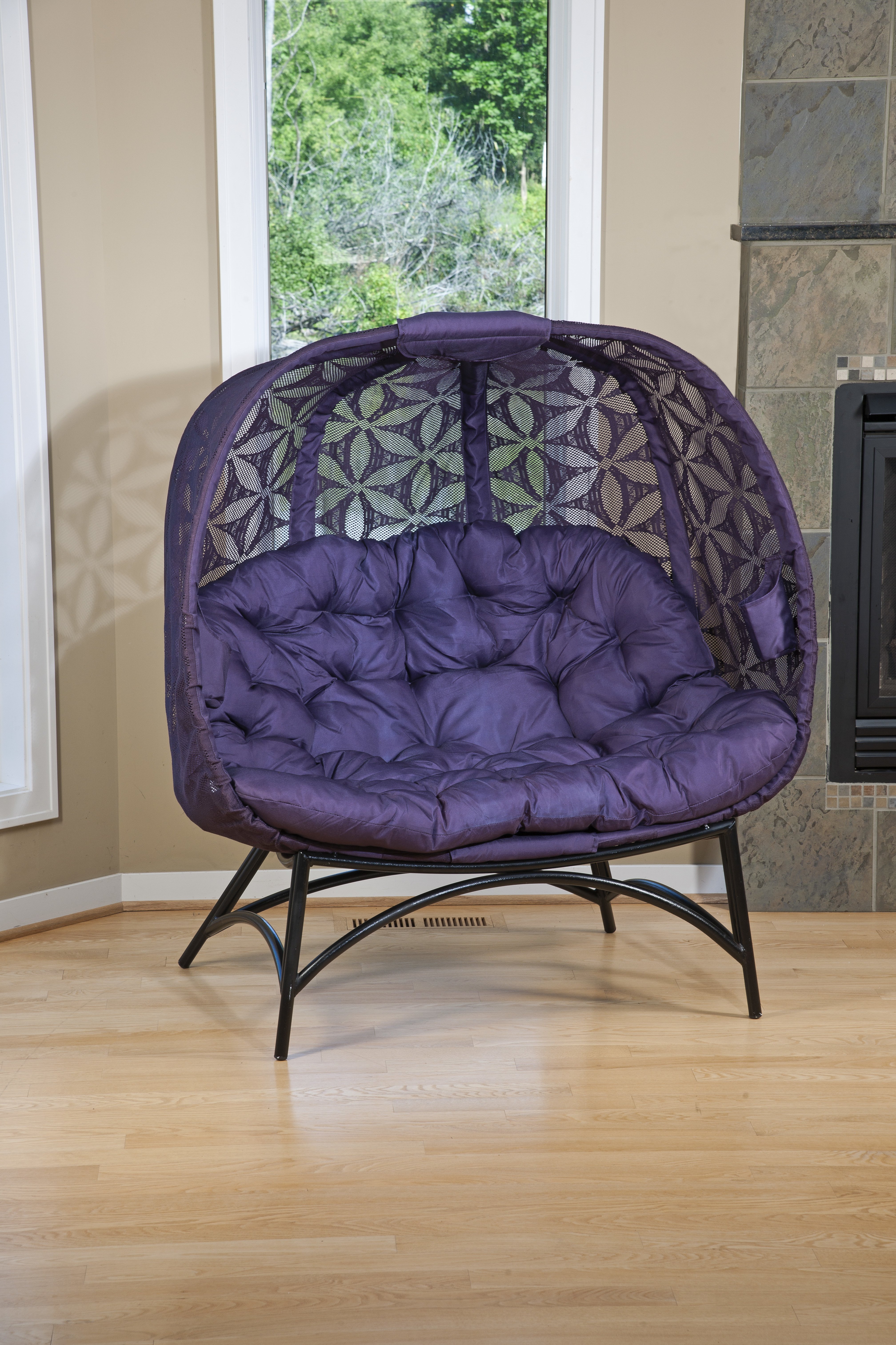 56 H x 50 W x 26 D Outdoor Purple Cozy Pumpkin Loveseat with Cushion and Flower of Life Design - as Pic