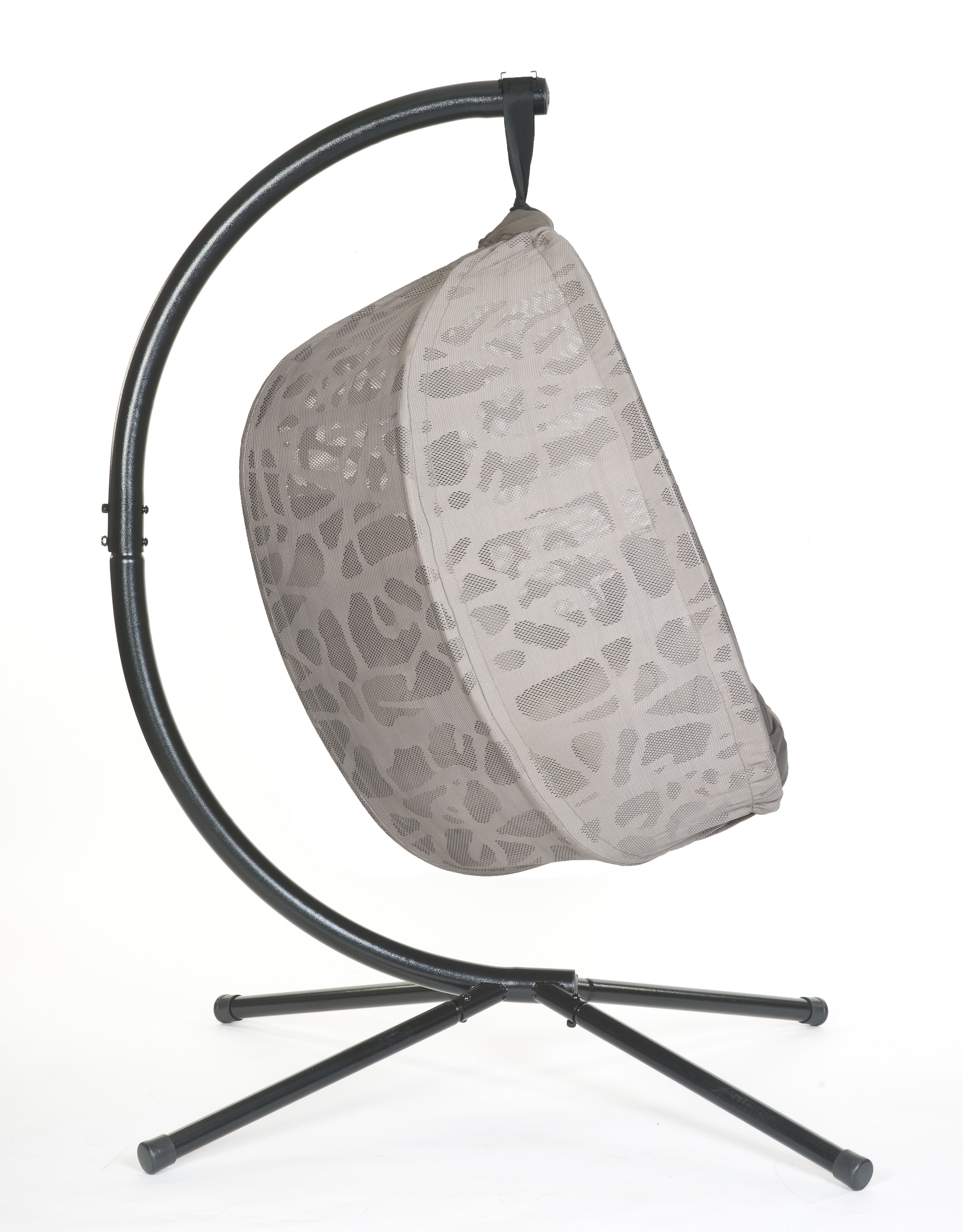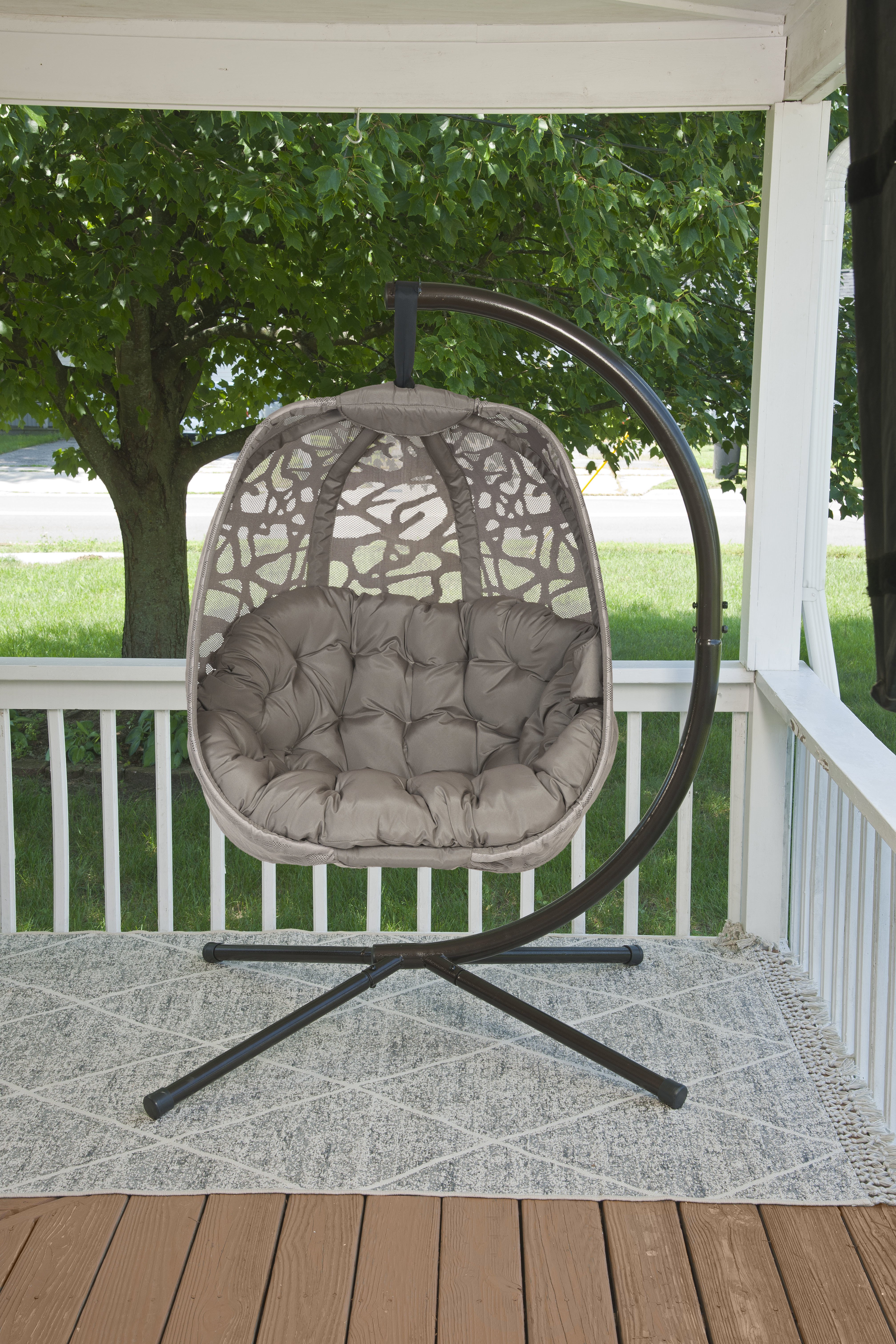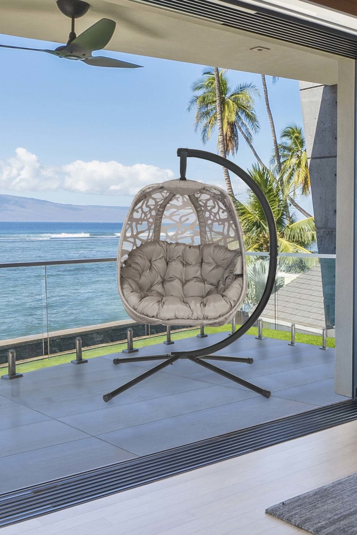 Home > 66 H x 34 W x 43 D Outdoor Beige Hanging Egg Patio Chair with Cushion, C Type Bracket, and Branch Design - as Pic
