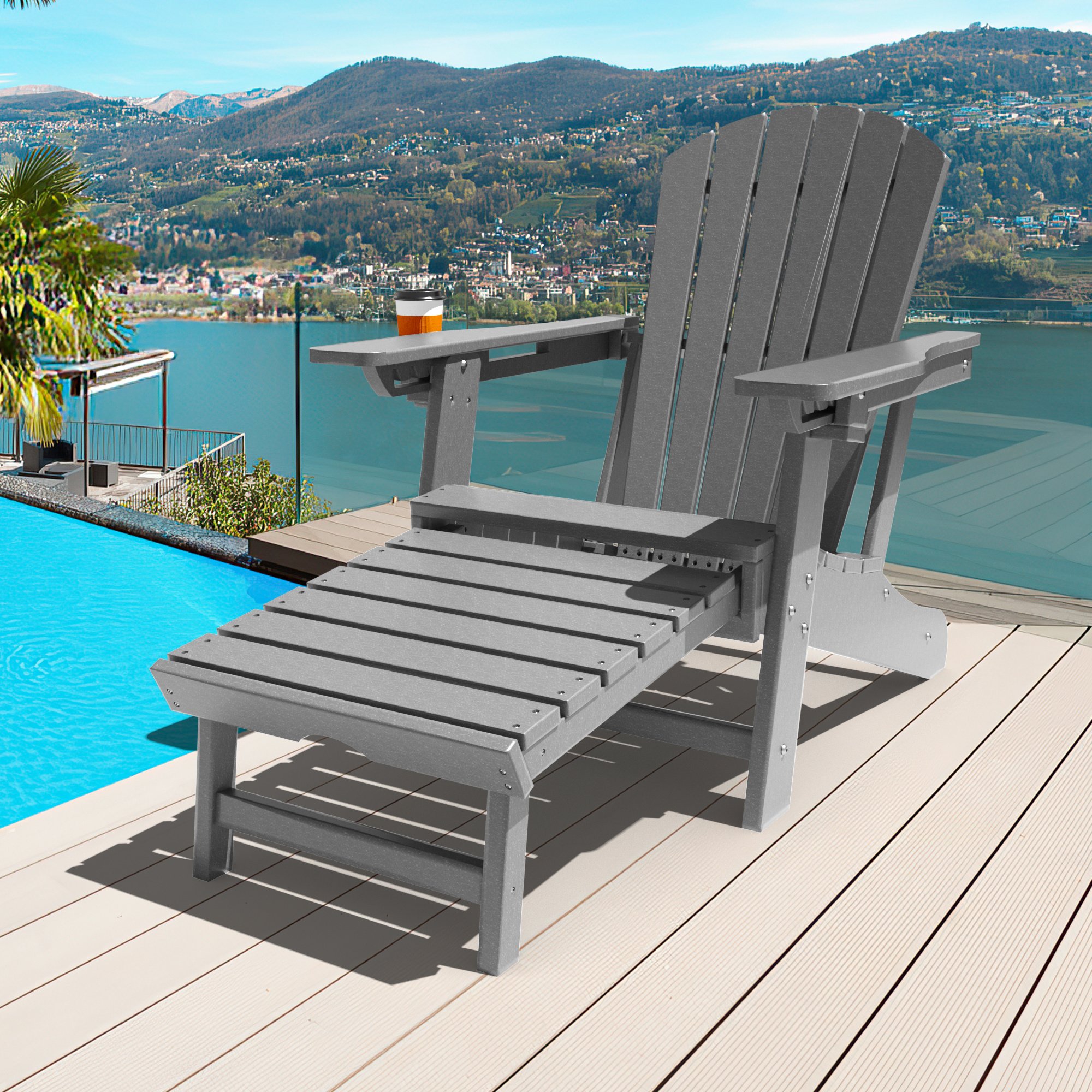 Adirondack Chair Lawn Outdoor Fire Pit Chairs Adirondack Chairs Weather Resistant/Adirondack Retractable Ottoman - Gray