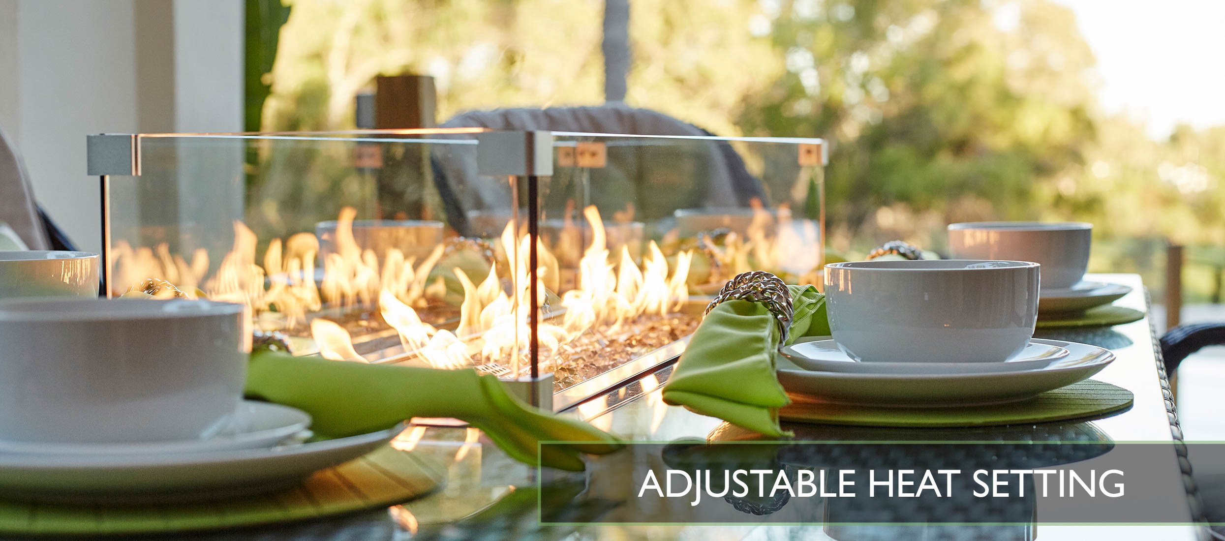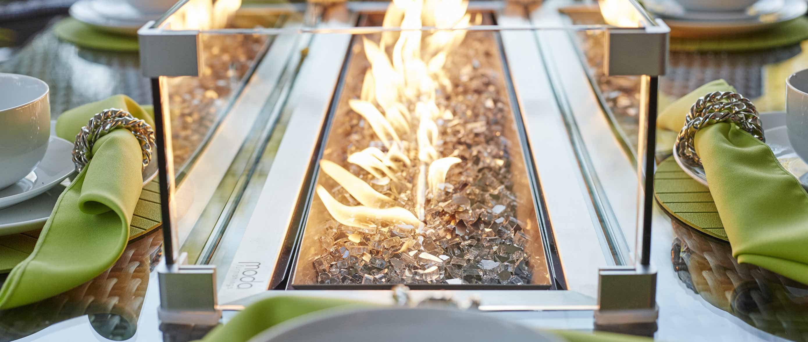[Description]1. The Eton Dining Collection is the ideal mix of craftsmanship; style and comfort. The dining table has a gas fire pit with multiple heat settings so you can prolong your outdoor relaxation into the night.