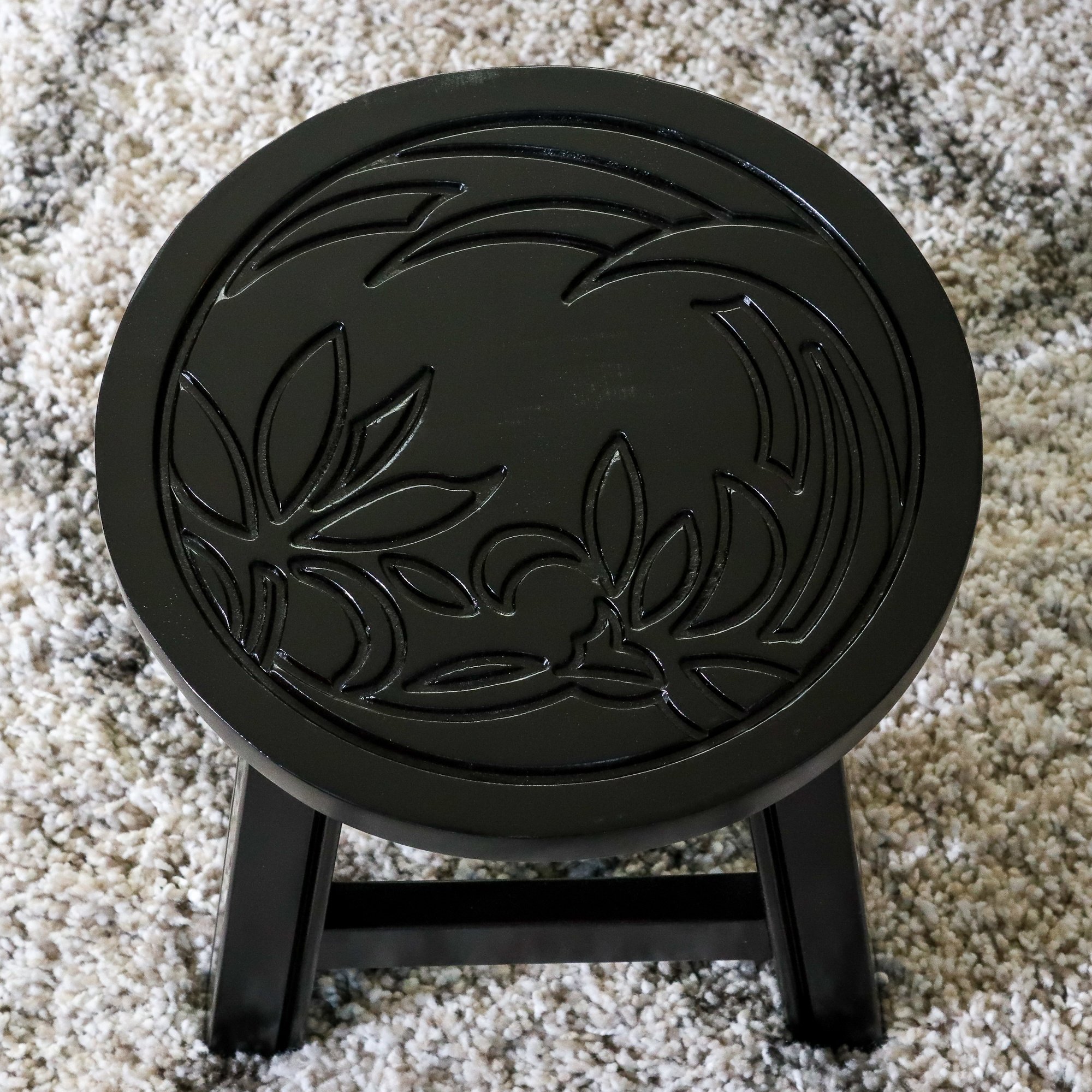 Carved Wooden Step Stool, Floral, Espresso - as Pic