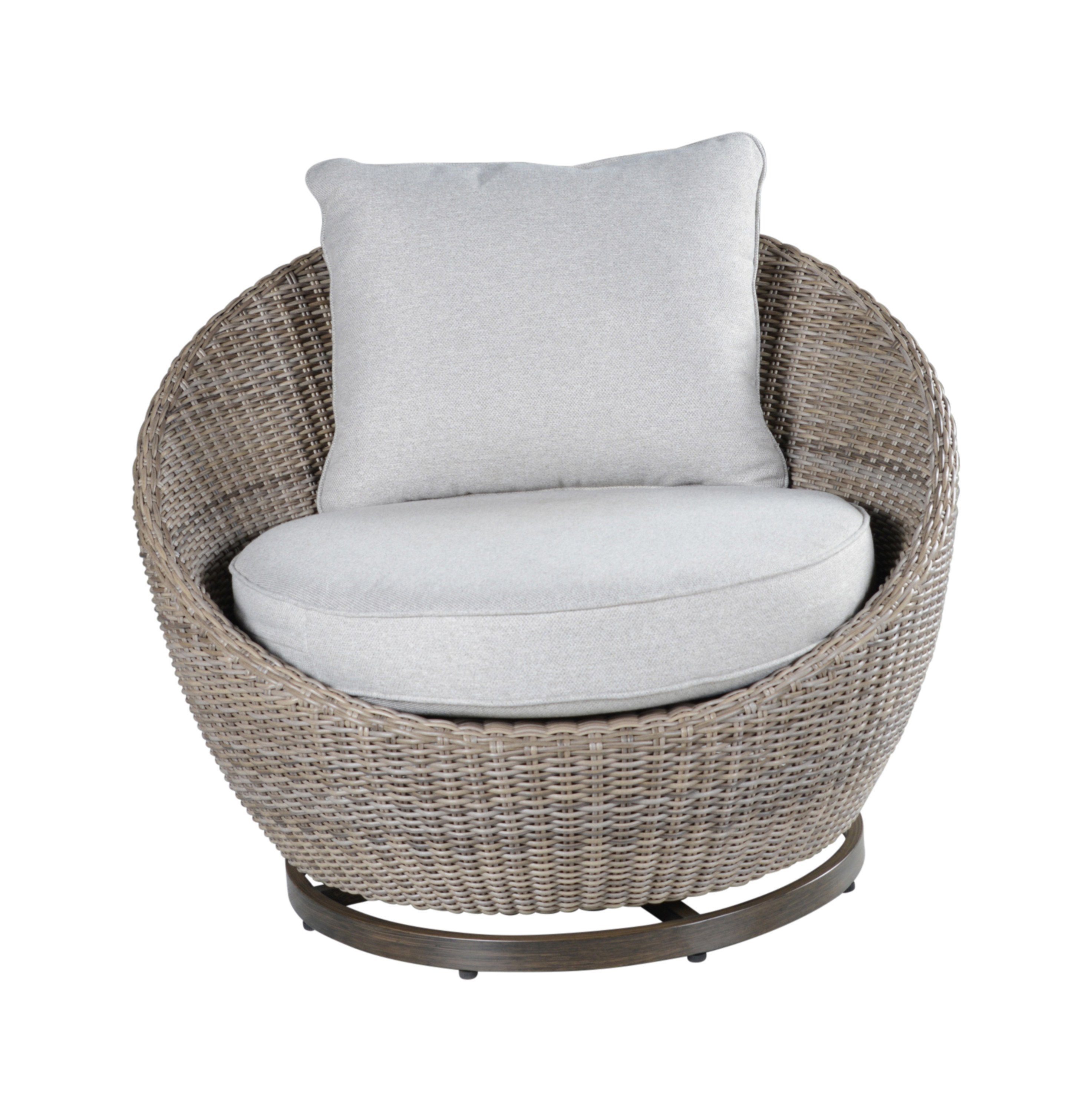 DimensionsCarton Dimensions L 51.2 x W 41.3 x H 41.1Features-Constructed of an aluminum frame with half round wicker-The 360° Swivel Accent Chairs feature a hand-brushed aluminum base and half-round wicker sides and back-HDPE All-Weather Resin Wicker-Ships fully assembledProduct DescriptionCreate a cozy setting for two with our 3-Pack Outdoor Set, perfect for enjoying warm summer nights. This set includes two swivel woven chairs and a Side Table, providing a relaxing and casual atmosphere. The egg-shaped chairs offer a 360-degree swivel feature, allowing you to unwind in any direction. Crafted with all-weather resin wicker, a powder-coated aluminum frame, and Solution-Dyed Acrylic covers, this set is built to withstand the elements. Fully assembled for your convenience, you can simply unbox and indulge in the comfort and style you desire. No need to worry about the weather—just sit back, relax, and enjoy!