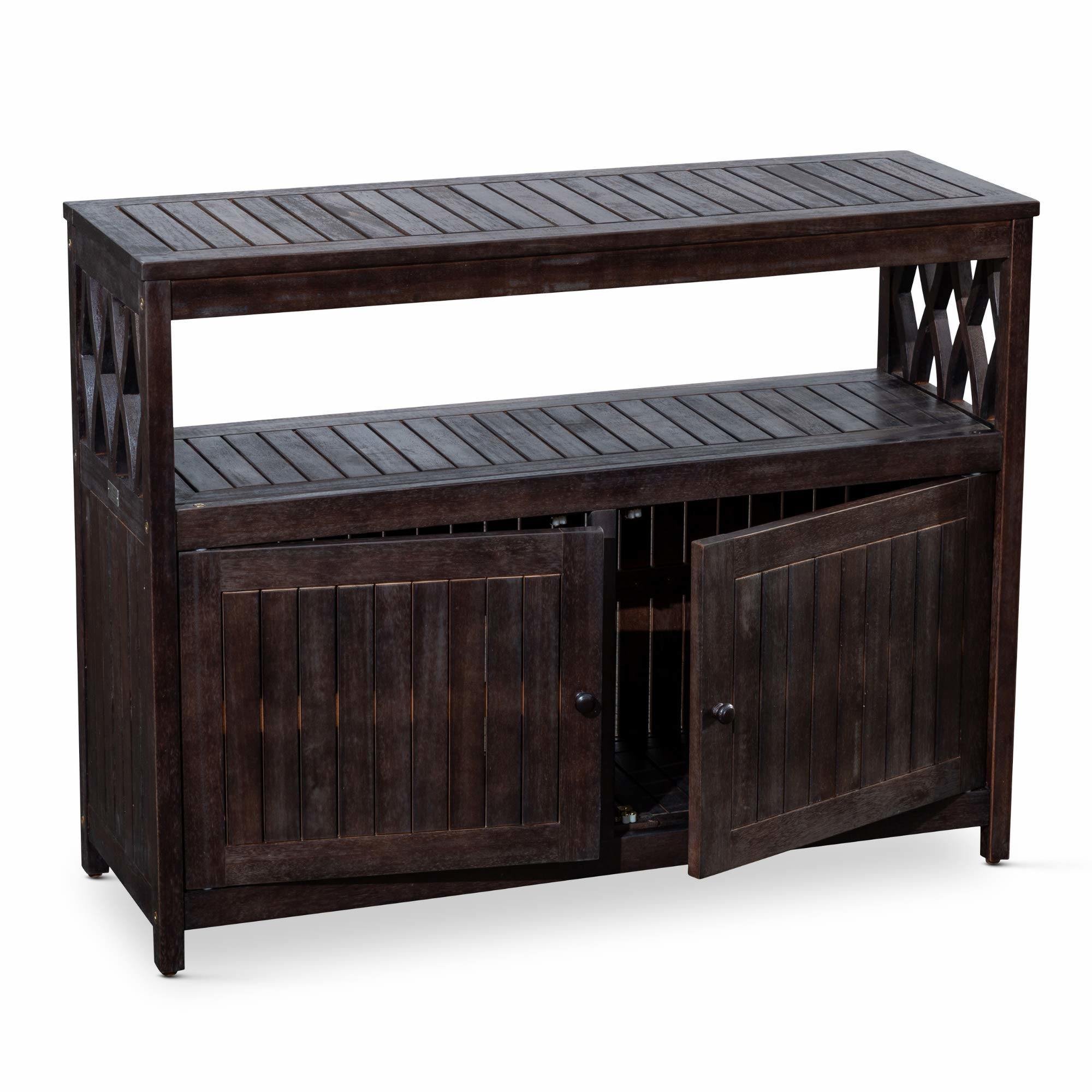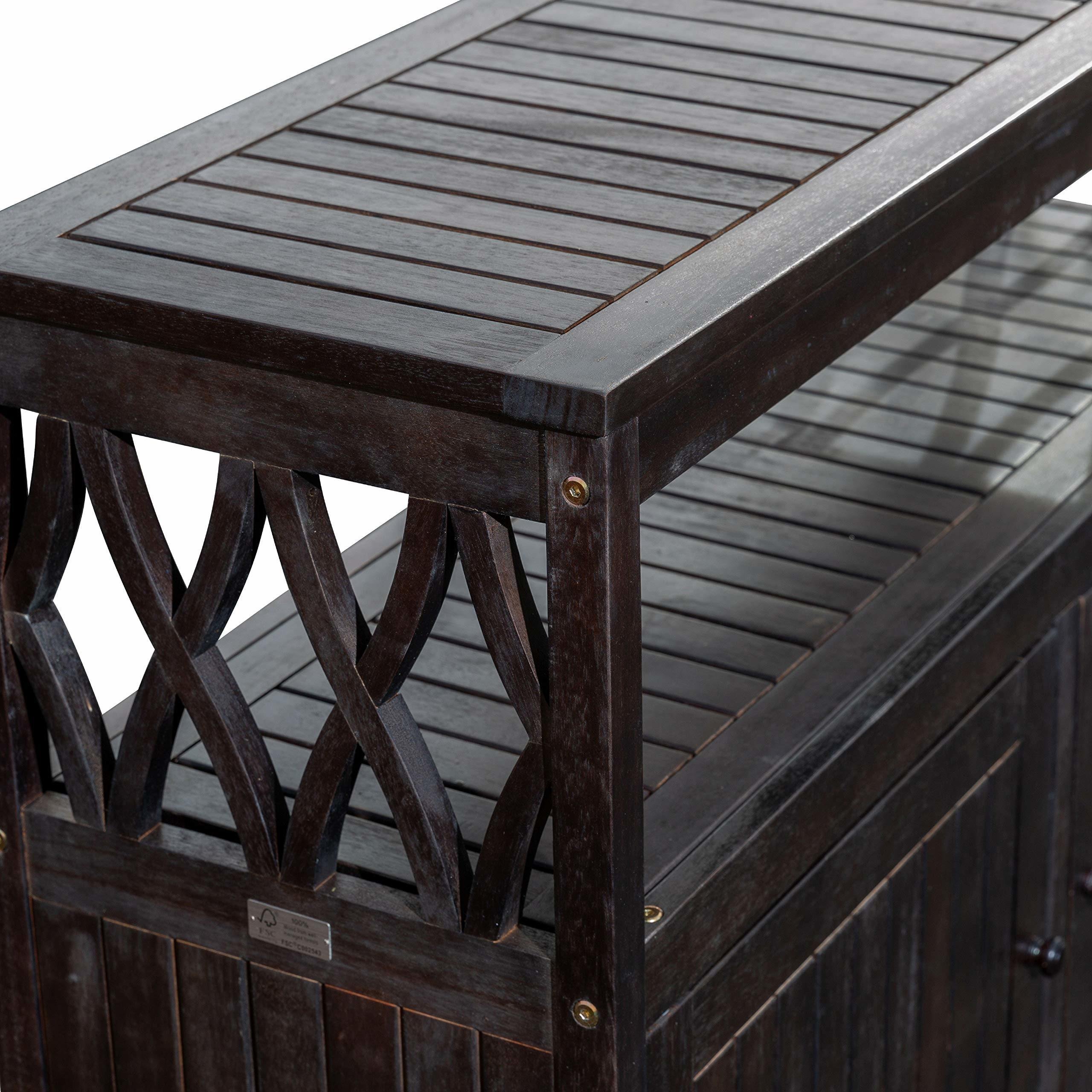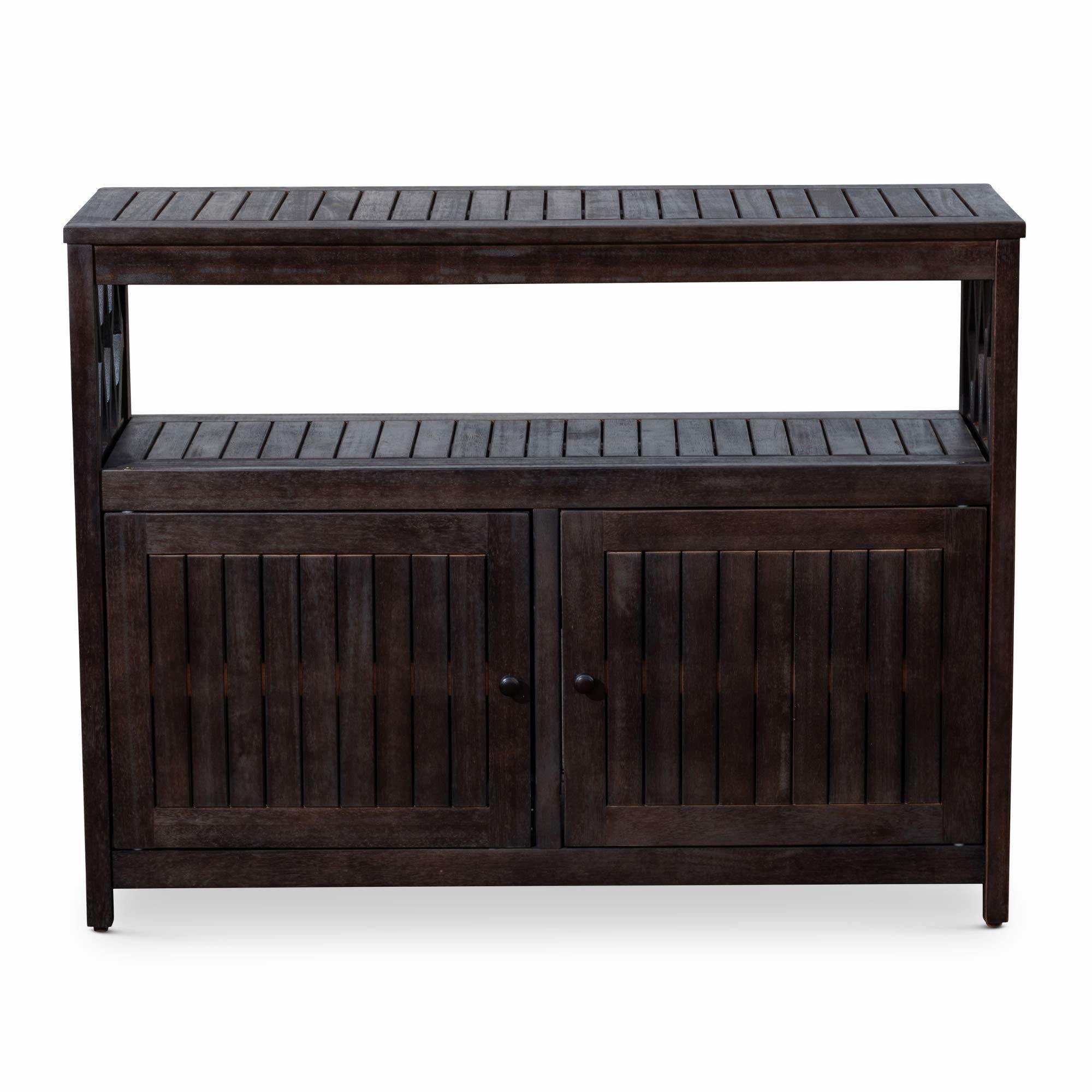 Eucalyptus Sideboard, EspressoBring your celebrations outdoors with this first-class sideboard. This striking eucalyptus sideboard is an elegant addition to your outdoor space. This functional piece is ideal for buffet or display. Set up an inviting buffet for food and drinks for your summer gathering or use to display your outdoor décor. Has plenty of storage for your outdoor tableware and supplies.