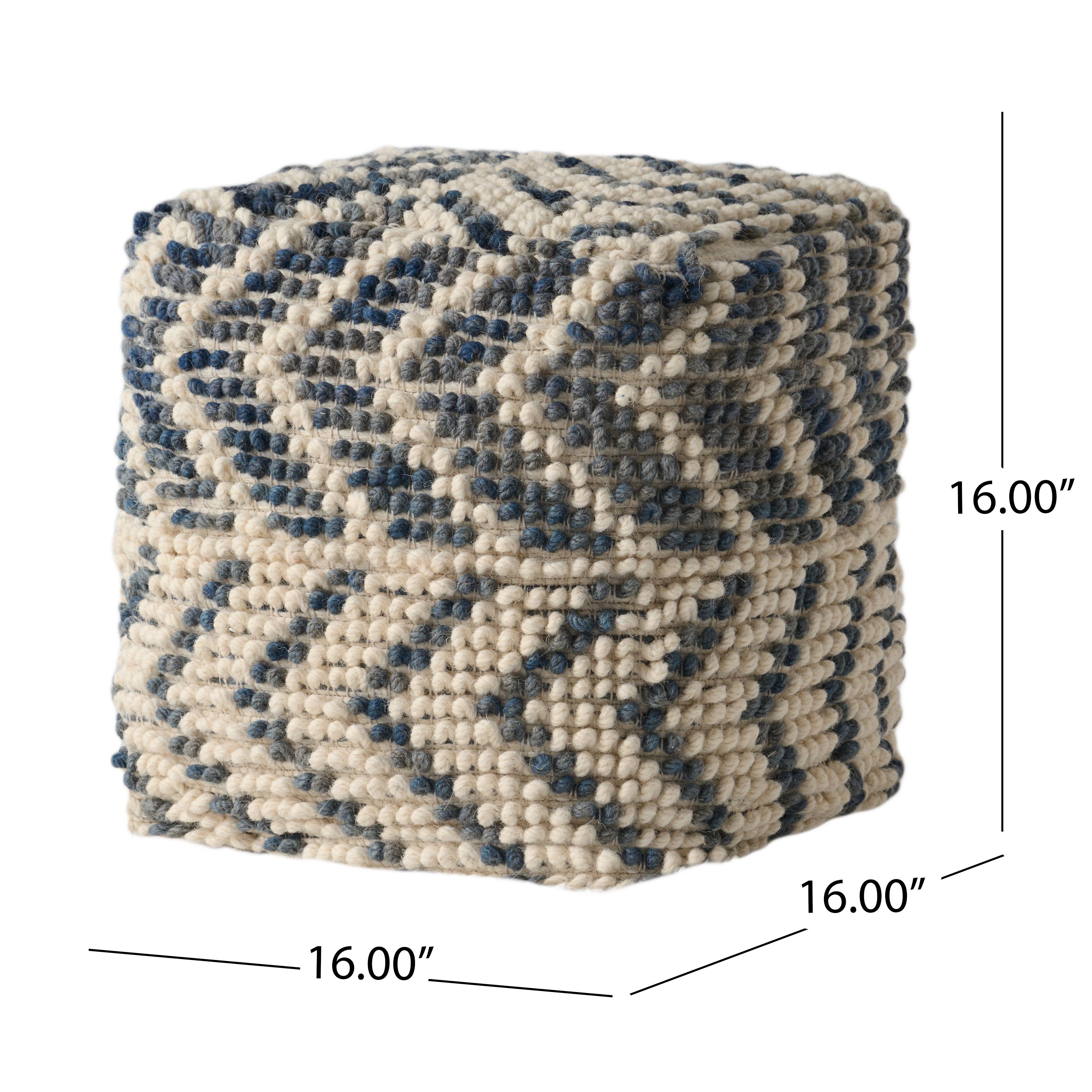 Home > Freesia Boho Wool and Cotton Large Ottoman Pouf, White and Blue - as Pic