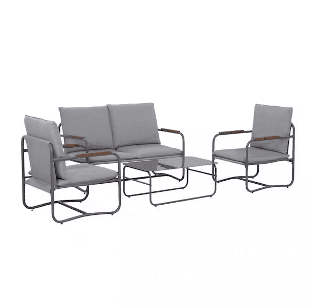 Outdoor Deep Seating Conversation Sofa Set, 4-Pieces Patio Metal Furniture with Light Gray Cushions - as Pic Outdoor Deep Seating Conversation Sofa Set, 4-Pieces Patio Metal Furniture with Light Gray Cushions - as Pic Outdoor Deep Seating Conversation Sofa Set, 4-Pieces Patio Metal Furniture with Light Gray Cushions - as Pic Outdoor Deep Seating Conversation Sofa Set, 4-Pieces Patio Metal Furniture with Light Gray Cushions - as Pic Outdoor Deep Seating Conversation Sofa Set, 4-Pieces Patio Metal Furniture with Light Gray Cushions - as Pic Outdoor Deep Seating Conversation Sofa Set, 4-Pieces Patio Metal Furniture with Light Gray Cushions - as Pic