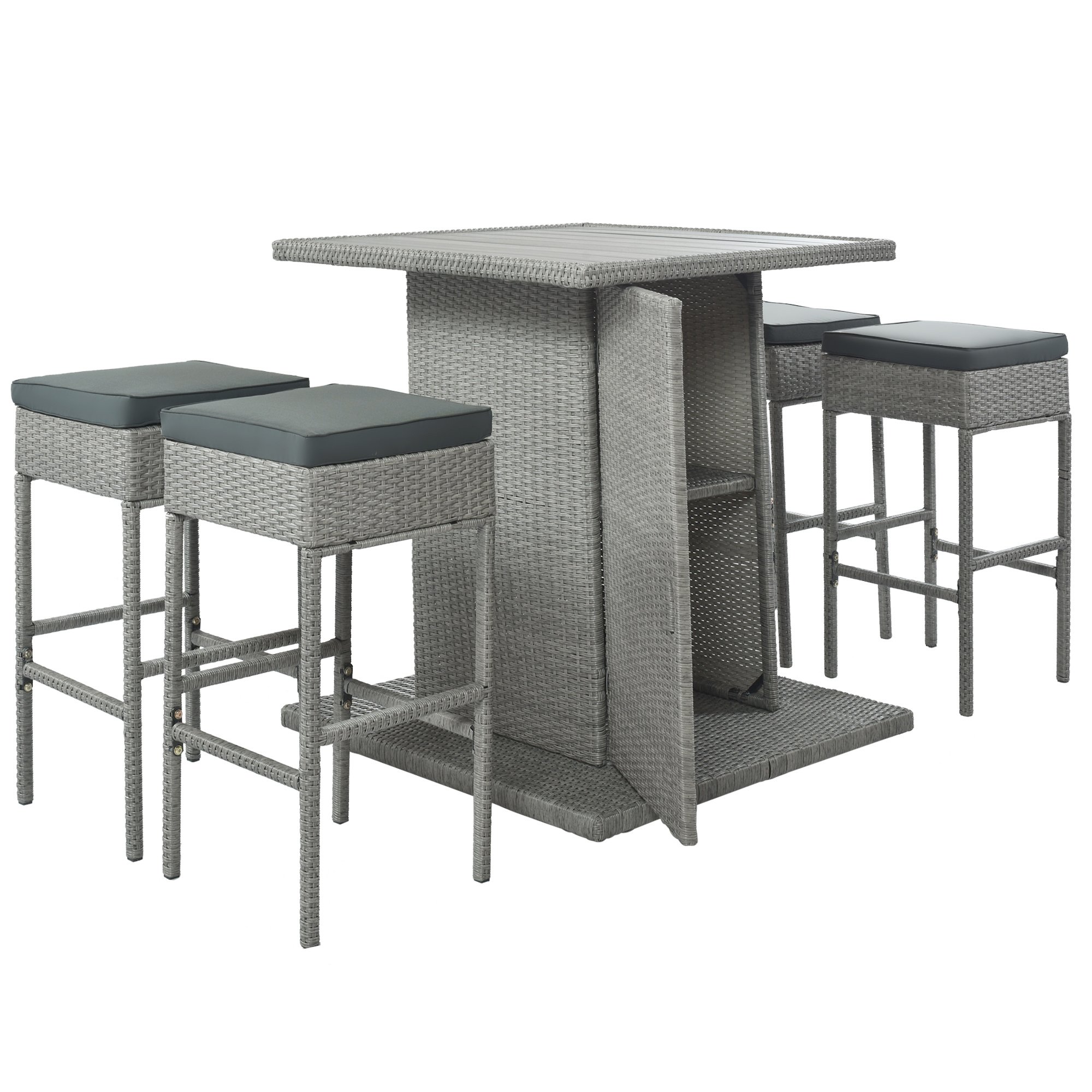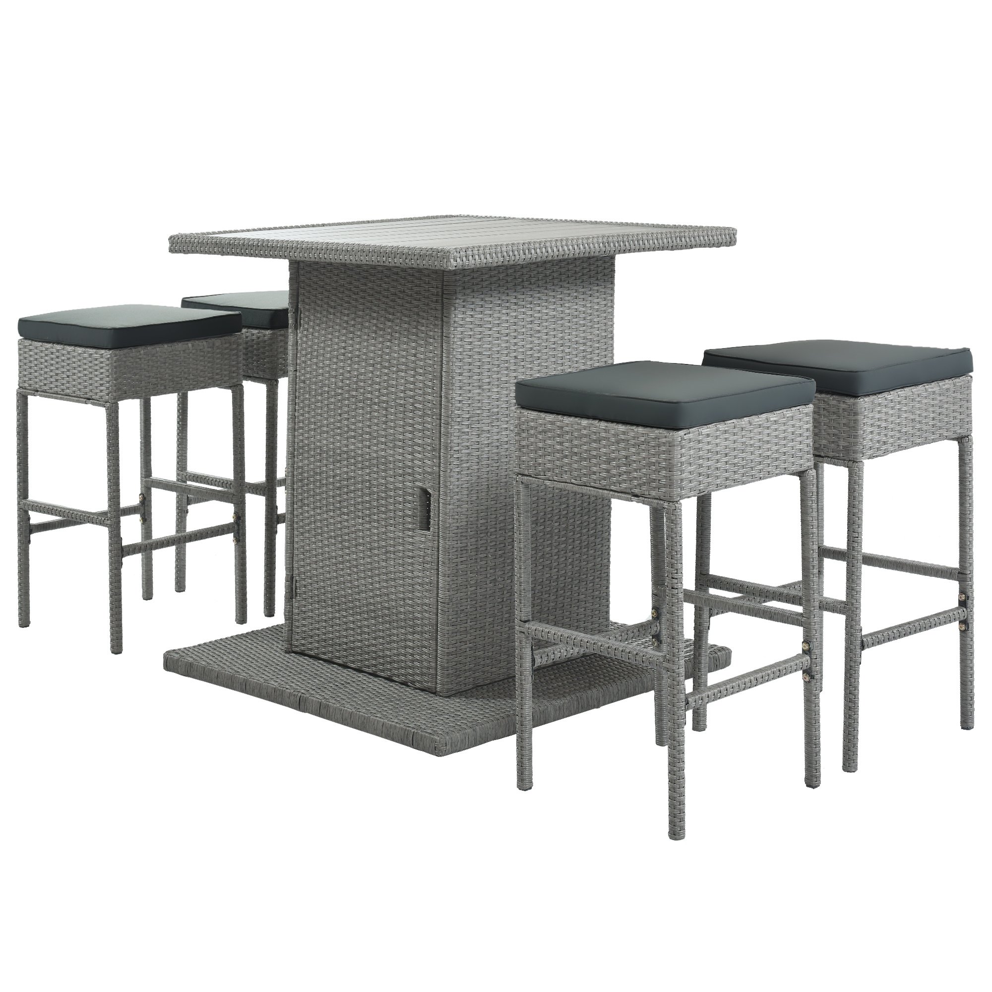 Patio 5-Piece Rattan Dining Table Set, PE Wicker Square Kitchen Table Set with Storage Shelf and 4 Padded Stools for Poolside, Garden, Gray Wicker+Dar Patio 5-Piece Rattan Dining Table Set, PE Wicker Square Kitchen Table Set with Storage Shelf and 4 Padded Stools for Poolside, Garden, Gray Wicker+Dar Patio 5-Piece Rattan Dining Table Set, PE Wicker Square Kitchen Table Set with Storage Shelf and 4 Padded Stools for Poolside, Garden, Gray Wicker+Dar Patio 5-Piece Rattan Dining Table Set, PE Wicker Square Kitchen Table Set with Storage Shelf and 4 Padded Stools for Poolside, Garden, Gray Wicker+Dar Patio 5-Piece Rattan Dining Table Set, PE Wicker Square Kitchen Table Set with Storage Shelf and 4 Padded Stools for Poolside, Garden, Gray Wicker+Dar Patio 5-Piece Rattan Dining Table Set, PE Wicker Square Kitchen Table Set with Storage Shelf and 4 Padded Stools for Poolside, Garden, Gray Wicker+Dar