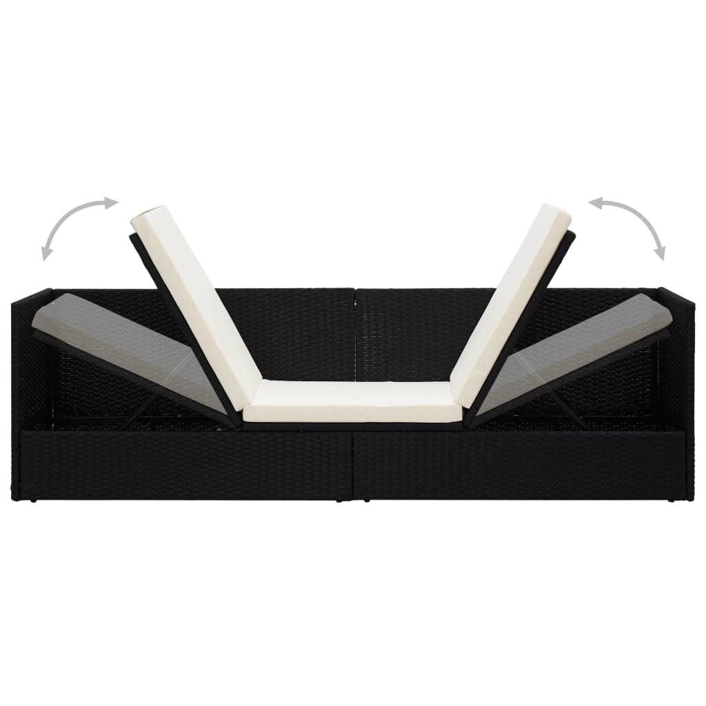 Patio Bed with Cushion & Pillows Poly Rattan Black - Black