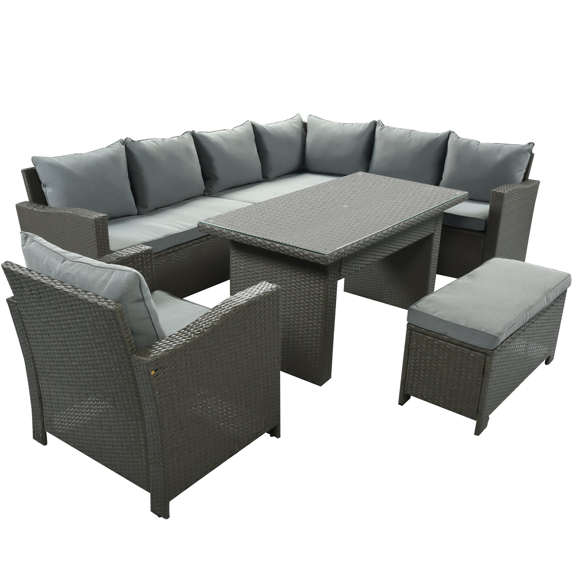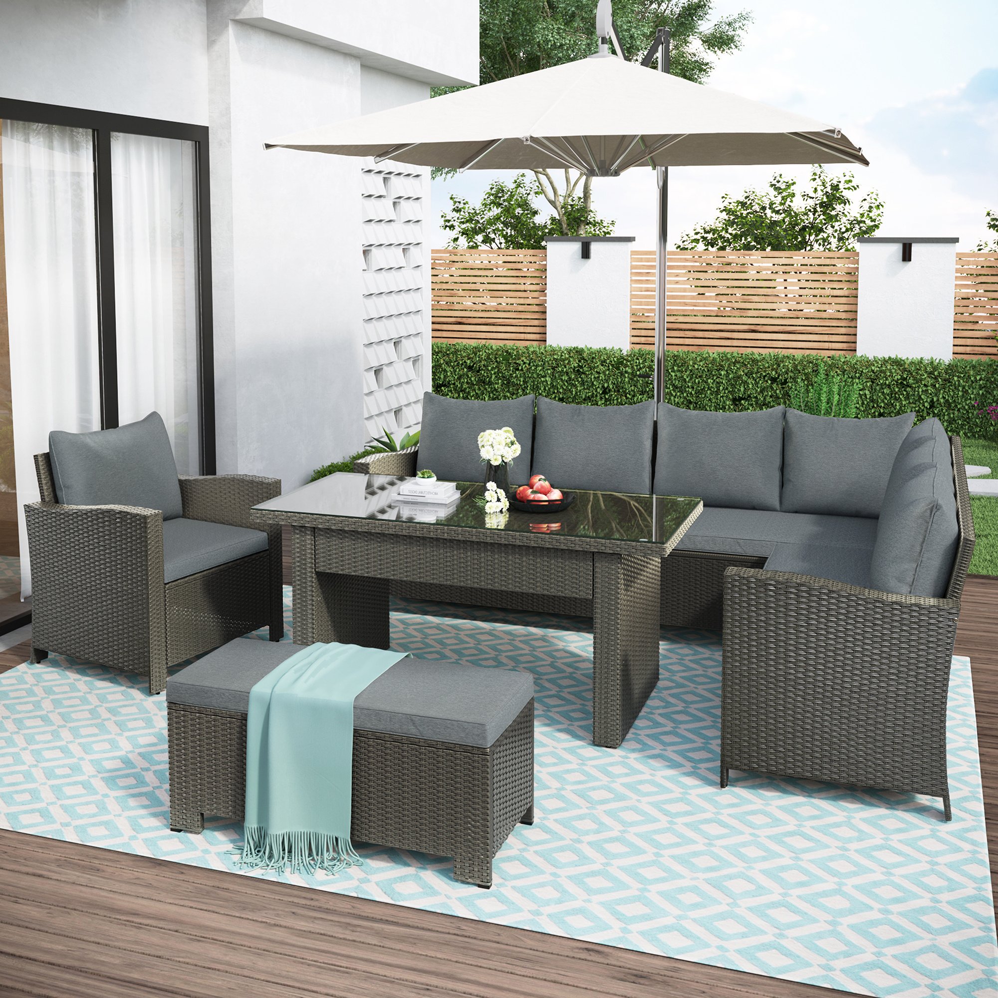 Patio Furniture Set; 6 Piece Outdoor Conversation Set; Dining Table Chair with Bench and Cushions - Gray Patio Furniture Set; 6 Piece Outdoor Conversation Set; Dining Table Chair with Bench and Cushions - Gray Patio Furniture Set; 6 Piece Outdoor Conversation Set; Dining Table Chair with Bench and Cushions - Gray Patio Furniture Set; 6 Piece Outdoor Conversation Set; Dining Table Chair with Bench and Cushions - Gray Patio Furniture Set; 6 Piece Outdoor Conversation Set; Dining Table Chair with Bench and Cushions - Gray Patio Furniture Set; 6 Piece Outdoor Conversation Set; Dining Table Chair with Bench and Cushions - Gray