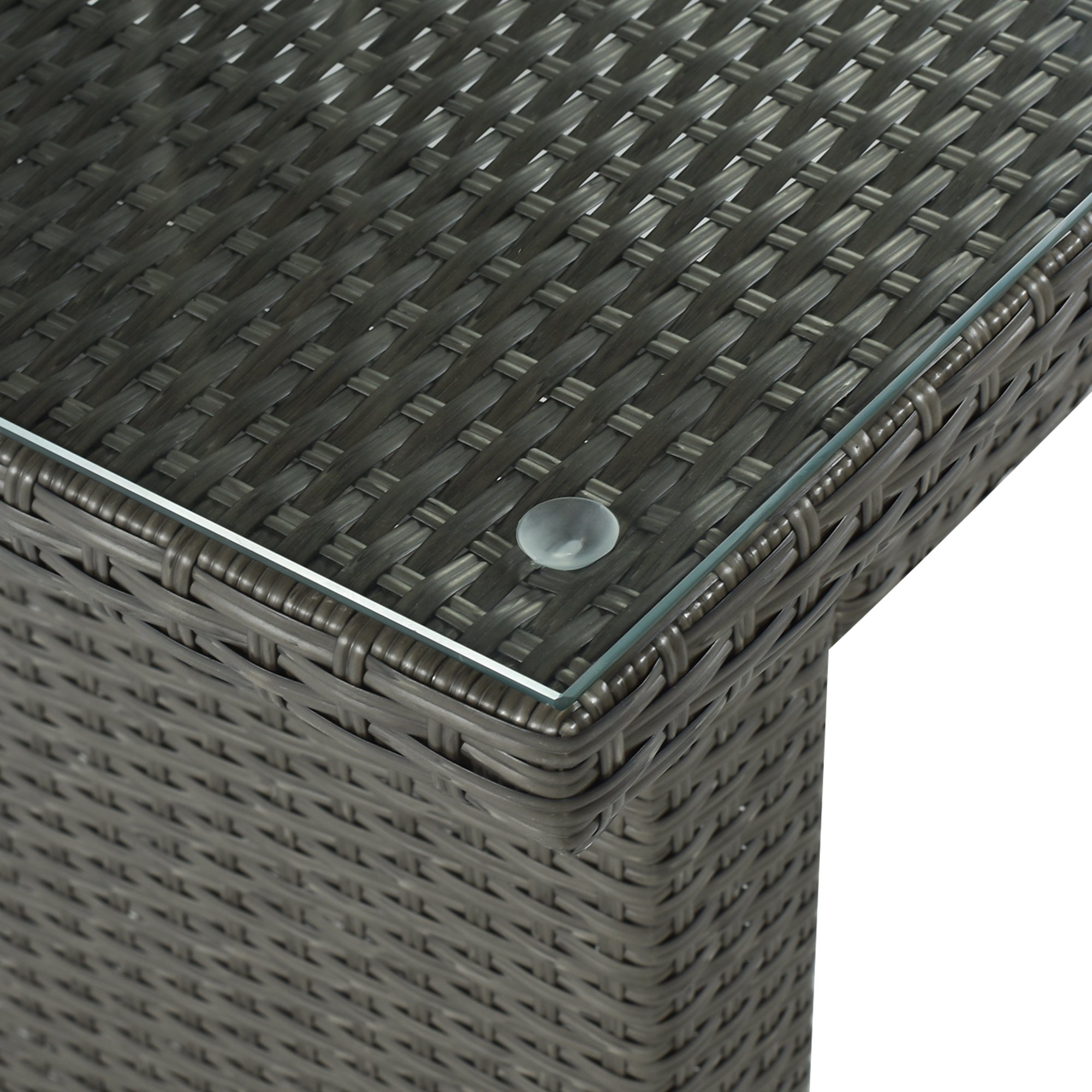 Coming with a six seat sofa; a single chair; a bench and a dining table; this set covers all the basics of outdoor lounging in a quality package. Thick frames provide anti-wobble stability while the wide arc arm rests provide ample room for laying out and relaxing. This patio set is crafted for weather resistance; with its tightly woven PE rattan material that is resistant to water(Cushions excluded). With the seating featuring an ergonomic curved silhouette; users are enabled to truly lean back and get comfortable; while the spacious center table Outside is PE rattan; inside is galvanized iron frame. Above is clear tempered glass.Take living room lounging outdoors with this complete 6-piece patio dining set; a great option for relaxing; having meals and entertaining guests while enjoying the fresh air.