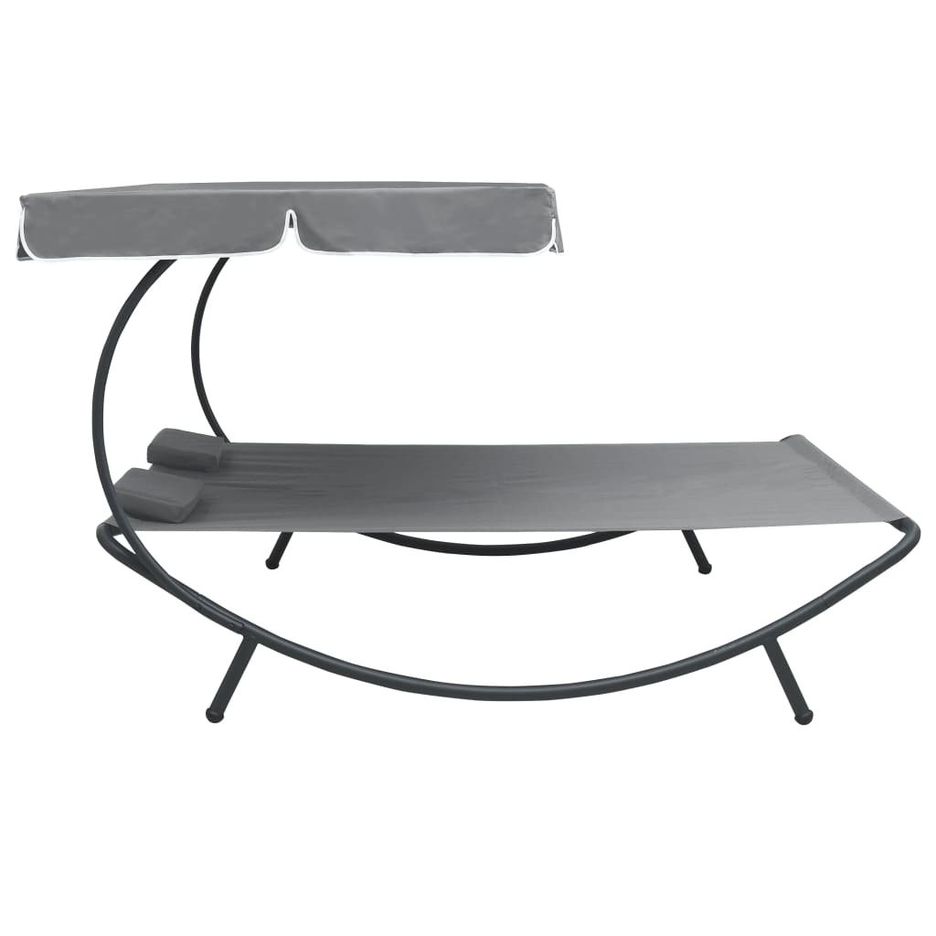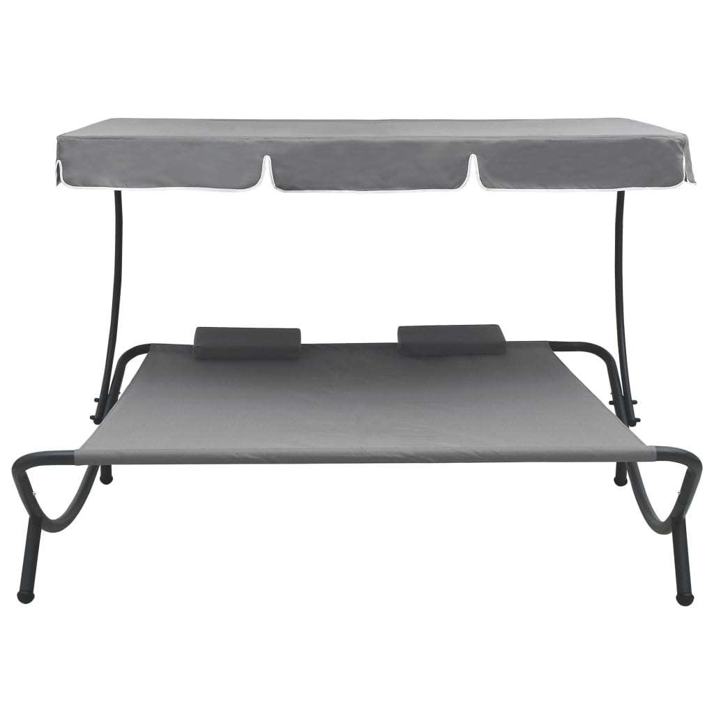 Patio Lounge Bed with Canopy and Pillows Gray - Grey