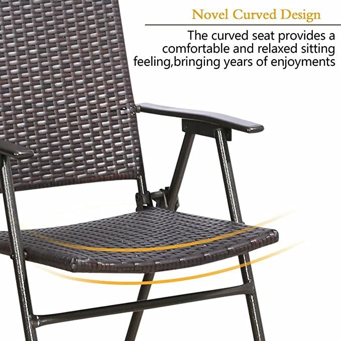 4.This Rattan Folding Patio Dining Chair will provide a comfortable seat for you. It can provide a comfortable seat for your family when eating, or playing games. It also a perfect seat in the outdoor, such as your garden, patio and poolside.