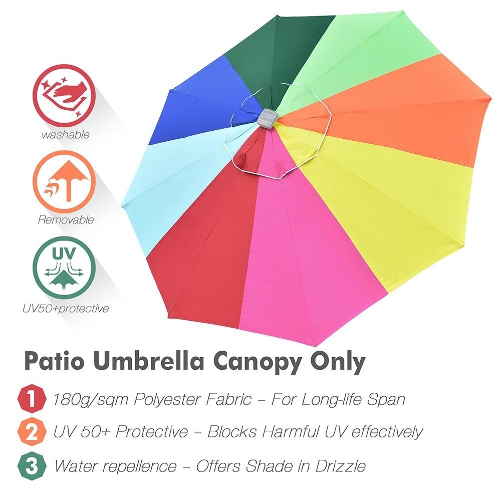 Rainbow-like Cover Only for Replacement - 7.5ft Universal replacement umbrella canopy; changes your old canopy with brand new rainbowlike color; fits for 8-rib central pole umbrella with rib length from 3 2/3ft to 3 3/4ft